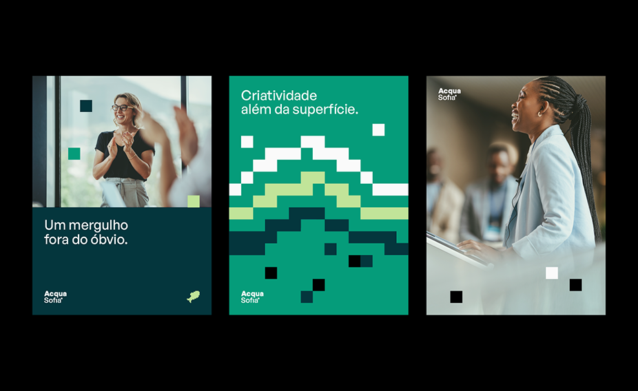 O conceito pixelado também dialoga com a nova fase jovem, aventureira e inovadora da Acqua Sofia. Cada pixel simboliza a jornada da nossa empresa, funcionando como um farol que guia os nossos clientes para resultados que vão muito além da superficialidade. É quase como fazer um mergulho fora do óbvio – e quem nunca sonhou em descobrir um tesouro escondido no fundo do mar?